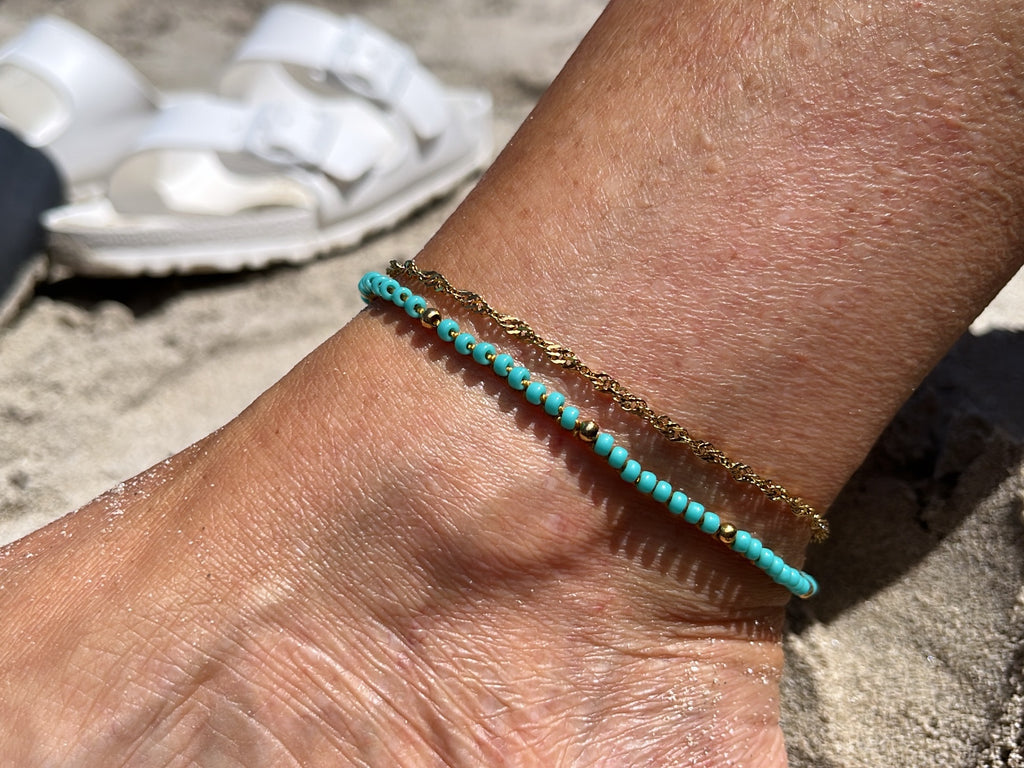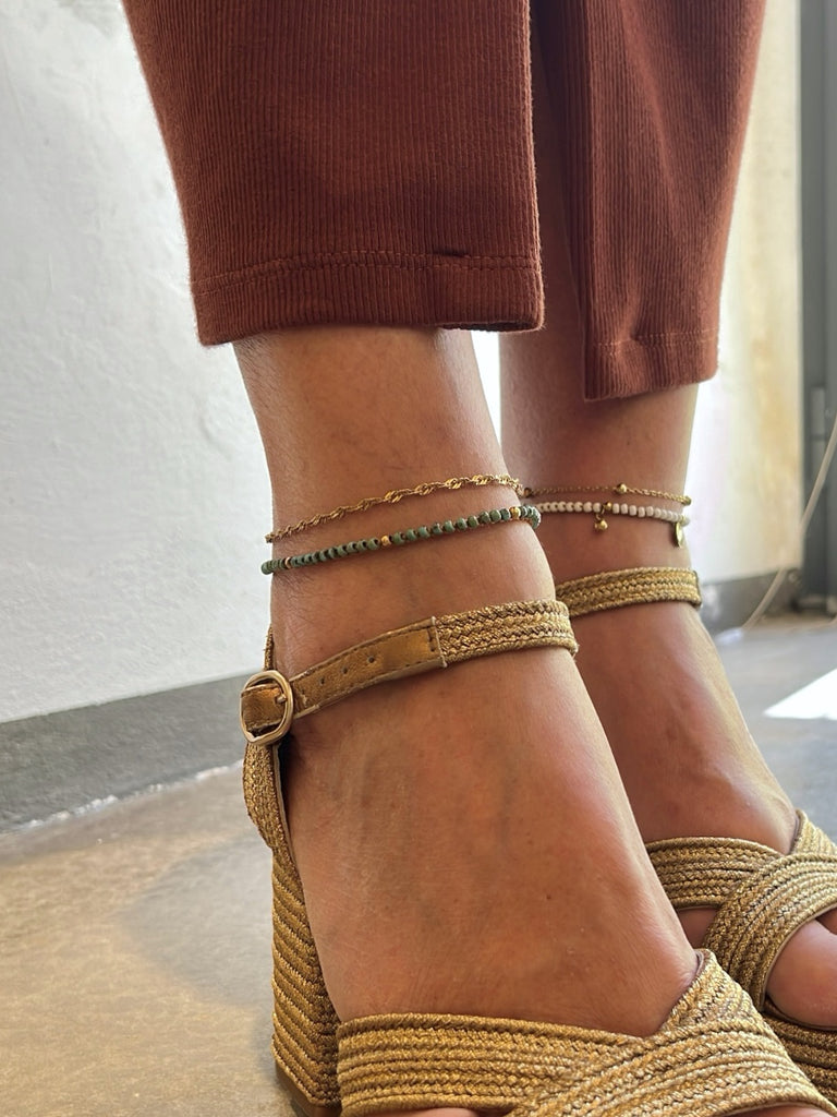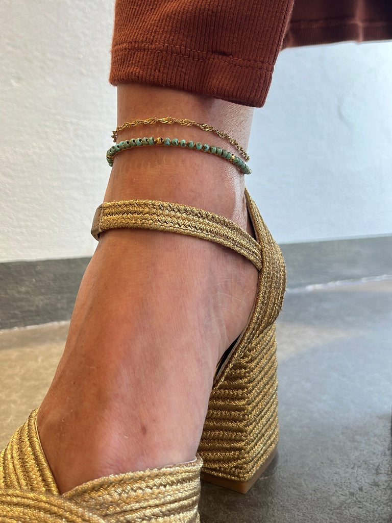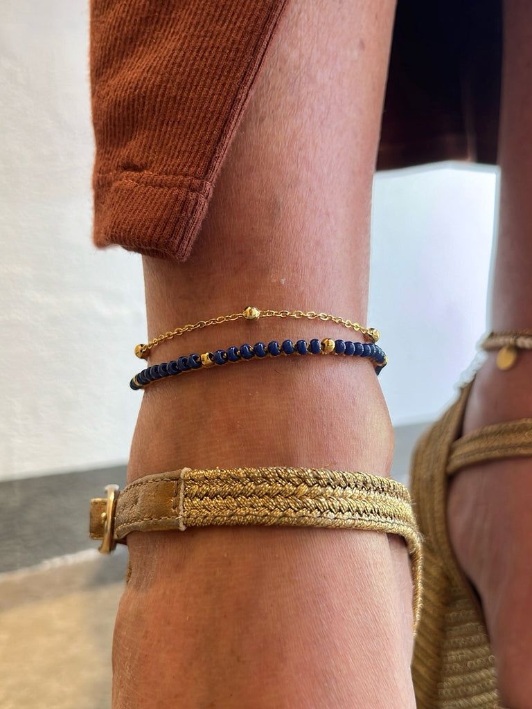 Cavigliera realizzata ad uncinetto con balls in acciaio dorato, uno stile semplice e particolare allo stesso tempo