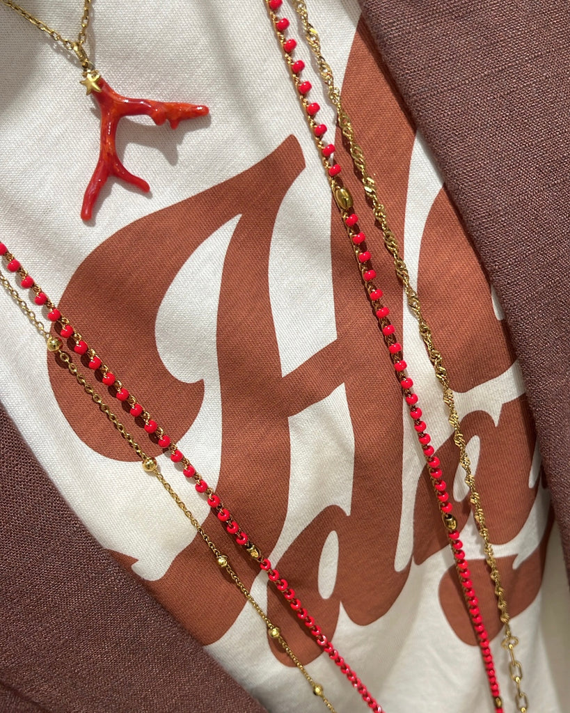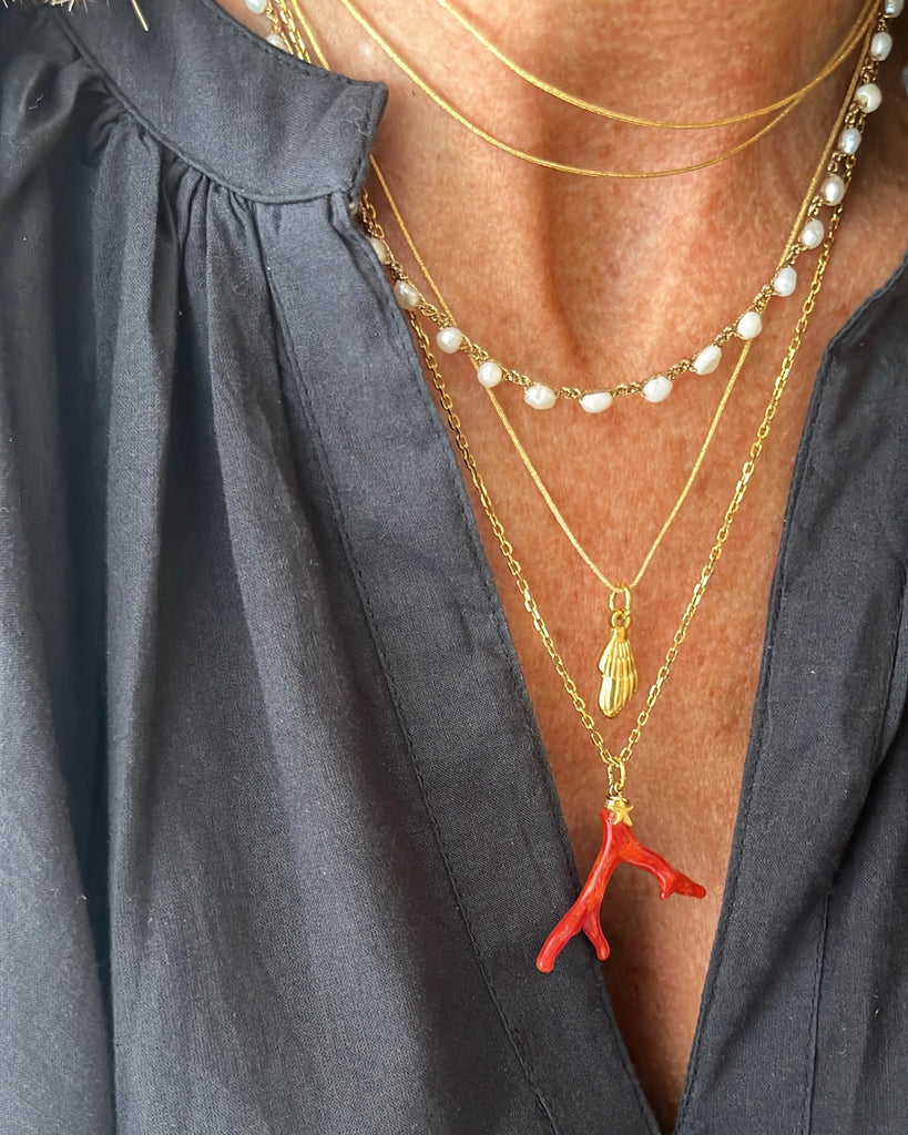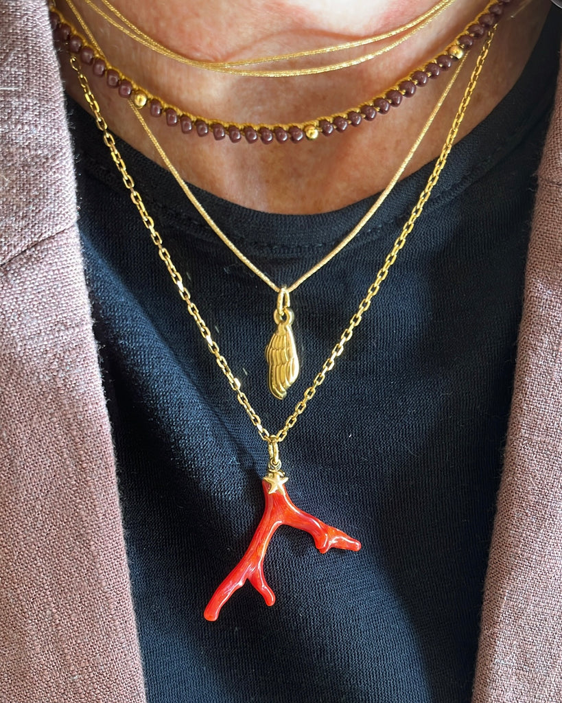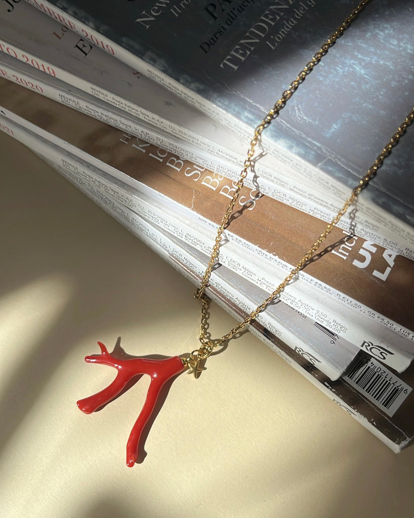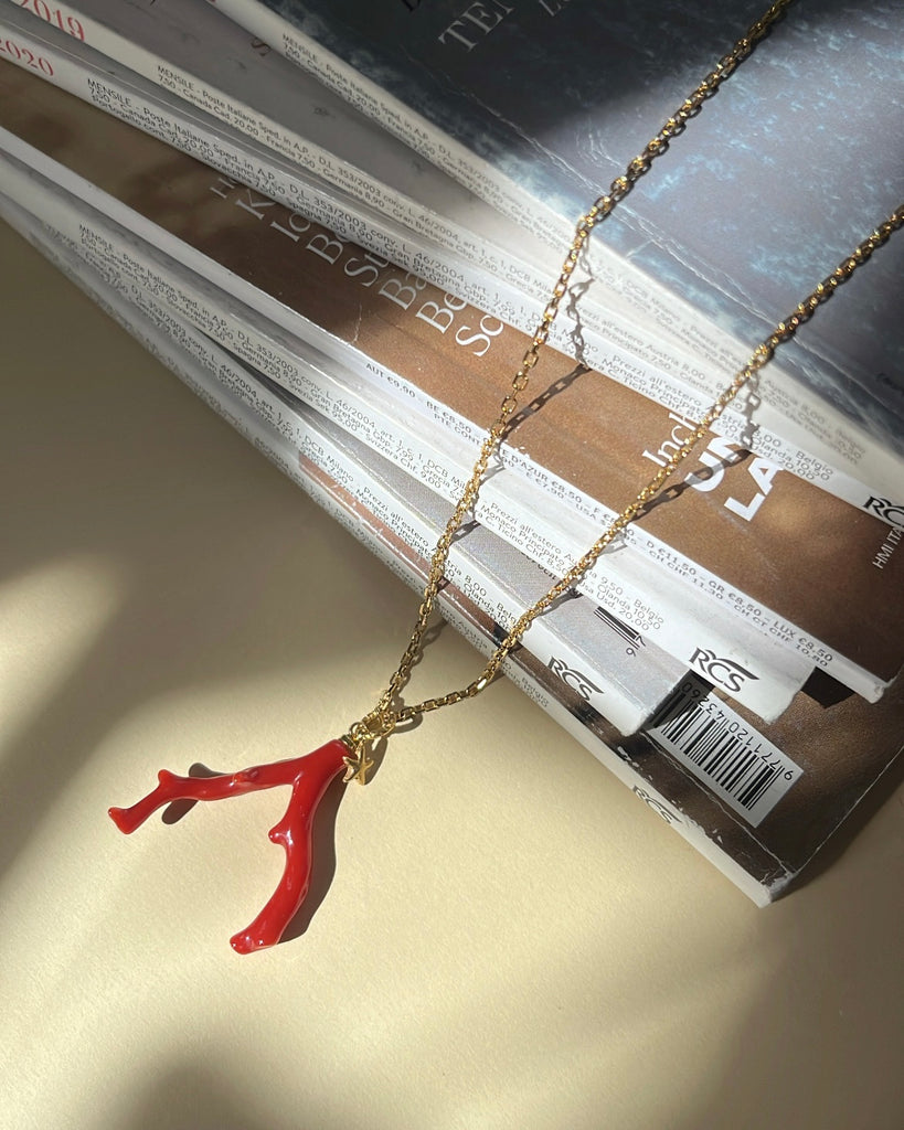 Una collana dove il protagonista assoluto é un ramo di corallo naturale.
