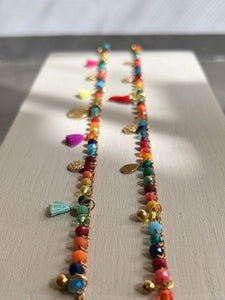 Un mix di colori che si susseguono in armonia tra di loro, scelti con cura uno per uno e una serie di ciondoli che lo rendono unico