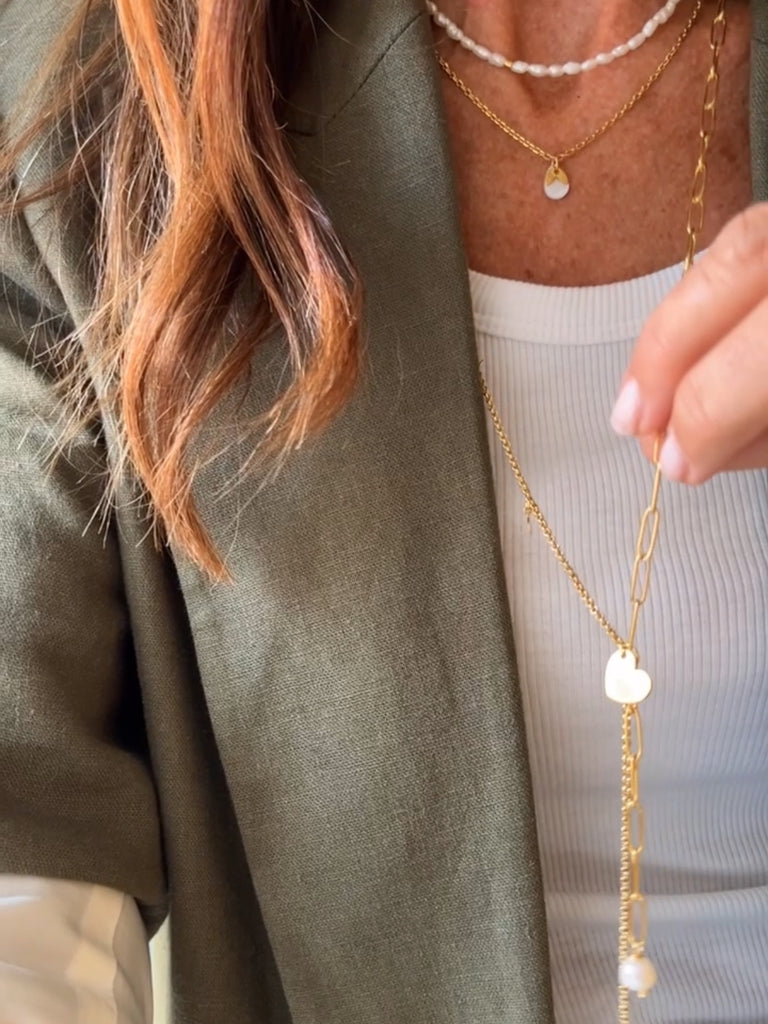 Tutta in acciao inossidabile placcato oro, perla di fiume naturale